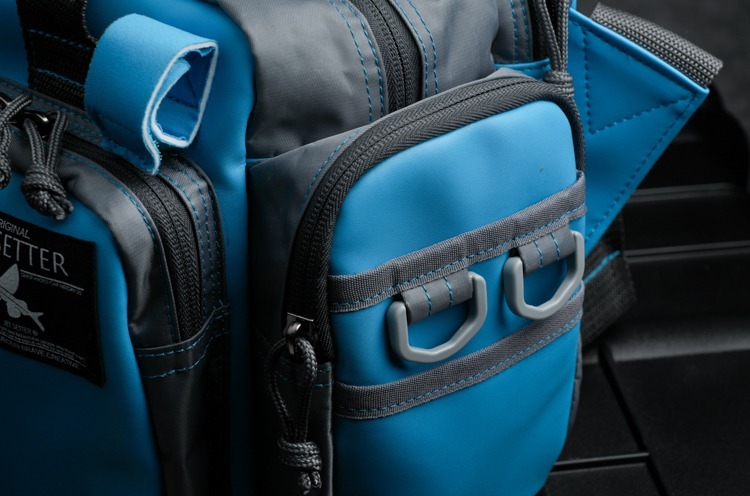 A staggered side pocket has been added, allowing simultaneous storage of pliers and a fish grip. Two D-rings provide more attachment options for leashes and tools.
