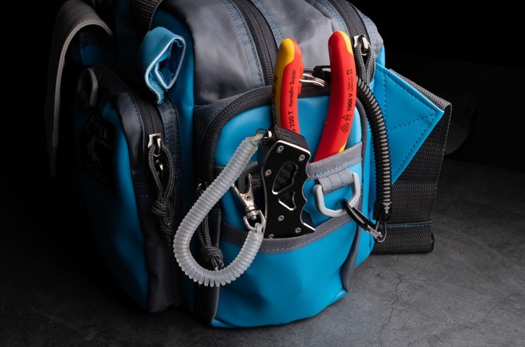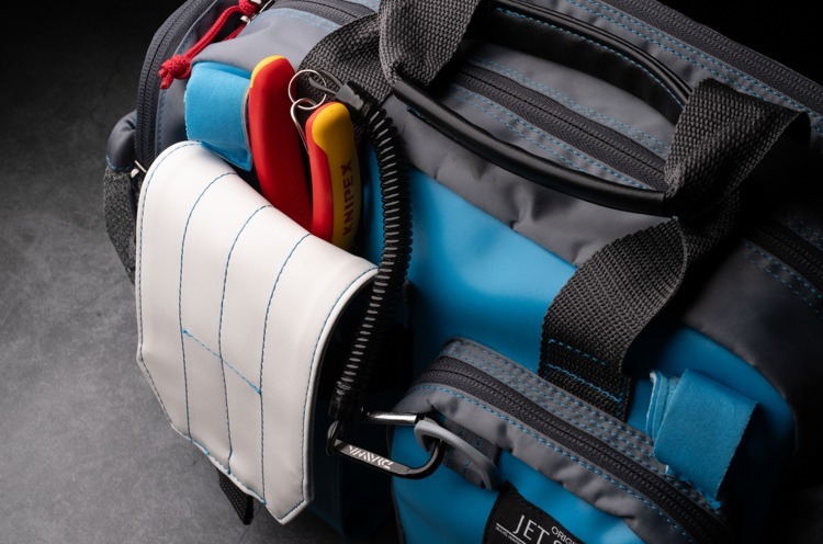 The gap between the magazine-style compartment and the main body is now utilized as a pocket, perfect for long pliers, scissors, or fish grips. Using the front D-ring prevents items from falling.