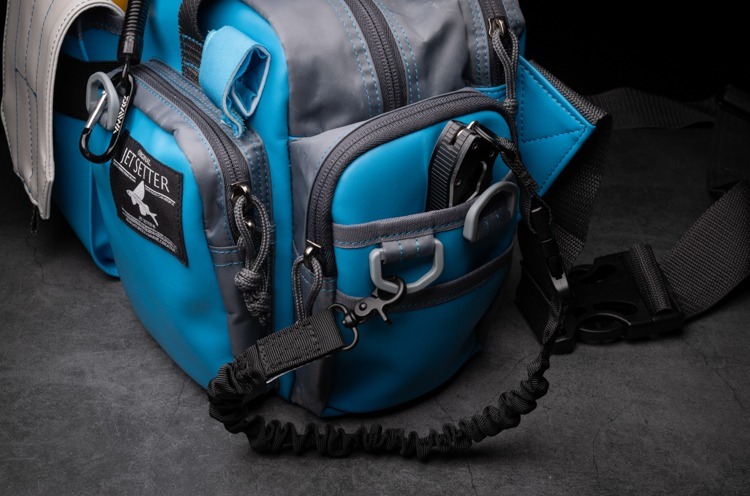A rod-fixing belt has been added on the front top section. Useful for lure or leader changes when wading, or for freeing both hands during photography.