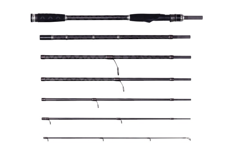 E. This series offers rods in 5-, 6-, and 7-section sizes. The shortest model has a stowage length of just 41.7 cm, making it easy for anglers to stow their rods in carry-on luggage or backpacks, eliminating the need for checked baggage.