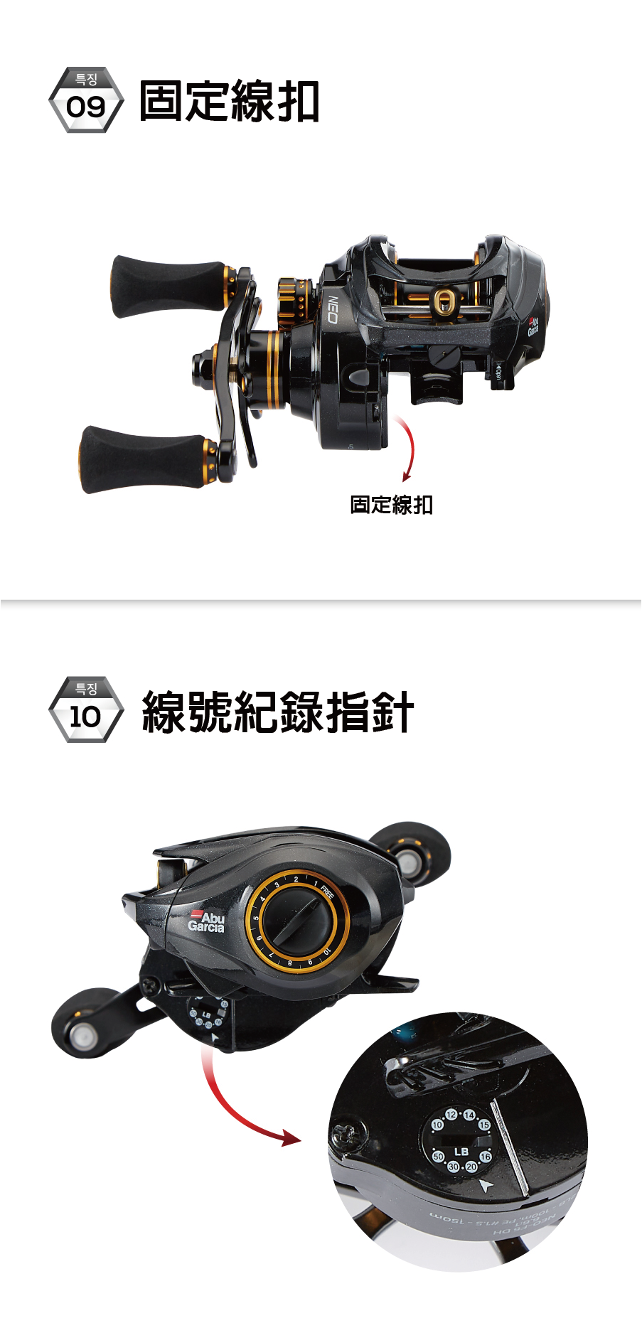 ●魚鉤固定器與固定線扣的功能配置。