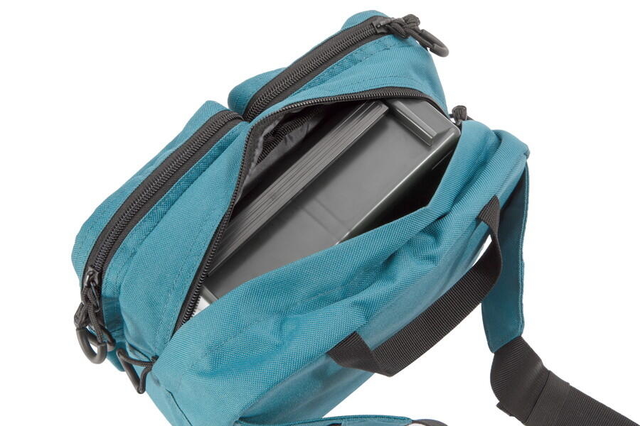 We can store smartphone or wallet in double pocket separately. Small case such as Abu hook & sinker case L (VS-318SD), Abu lure case, light game case (SFC-LF, SFC-FF) can be stored just.