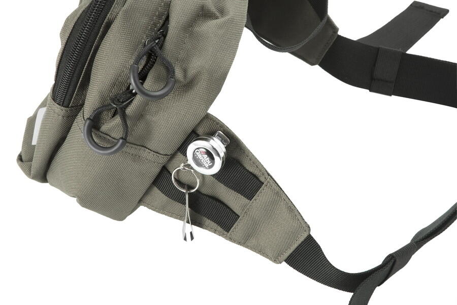 It has a loop-shaped D-ring belt on the side, and it is possible to attach an optional Abu magnet releaser.