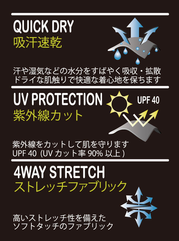With UV / sweat absorption / quick drying / deodorant function