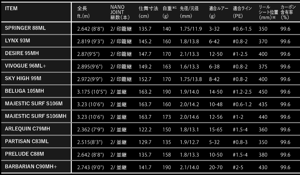 A model that is effective in situations where long distances are assumed, such as surf and large rivers. Despite its flexible blank, it has a strong force to push out the lure, and the tip vibration converges quickly after casting, so you can cast the longest distance with about 60% of the force. It is suitable for a wide range of targets, from sea bass to flatfish and bluefish.