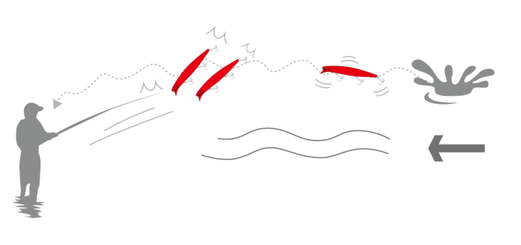 Use the current to create line tension and allow the lure to drift naturally.