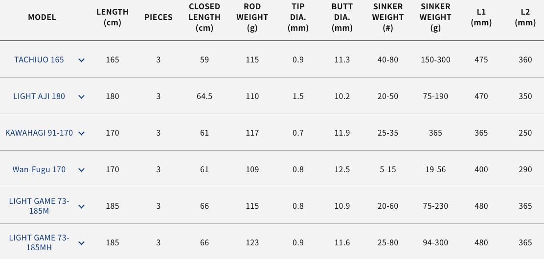 ・The 165cm length makes sharp actions of rigs and provides new fun to the anglers including experts.