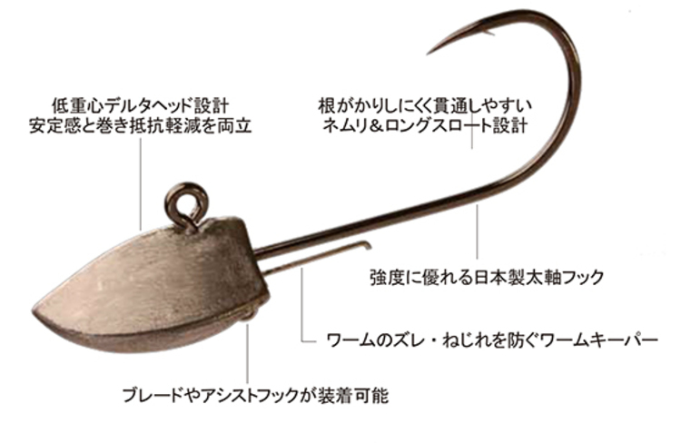 A swimming jig head packed with the basic elements of hard rockfish games, such as a sleeping hook that is less likely to be crushed.