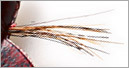 採用真實動物的毛, 用來模仿蝦子的腳, 黑鱸就餌時, 因有真實感而再次的就口, 而毛有一點張力, 在水流推動之下與軟的本體產生局部放大的波動, 更有活生生的感覺, 而這毛也扮演平衡的角色, 穩定在水中的姿勢