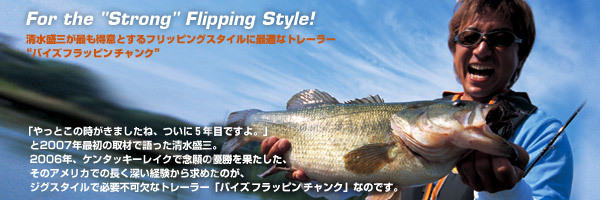 日本清水盛三職業釣手, 特別喜歡用在Rubber Jig及德州釣組, 另外搭配汲頭鉤及卡來羅那釣組也是很有效果