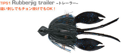 Rubber jig 軟蟲的勾法有兩種, 將軟蟲勾到底的方式(如上圖), 這樣能牢牢的勾住軟蟲, 通過緊湊水生植物時就不會脫落, 當水生植物沒那麼密集時, 鉤尖只鉤住BYS Flappin Chunk的尾端即可, 這樣軟蟲擺動就會自然些, 對付頑固的大黑鱸更有效果