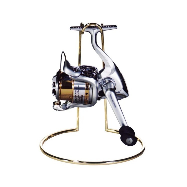 Insert the reel foot through the gap in the stand, stand it upright, and rotate to mount it in place.