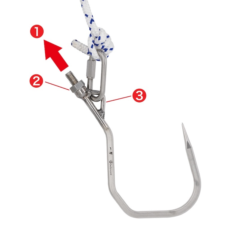 ❶By installing a rope hole on the inside, the structure makes it difficult for the gaff to come off because the load is applied in the direction in which the gaff sticks to the fish, especially when landing using only a rope at a rocky shore.