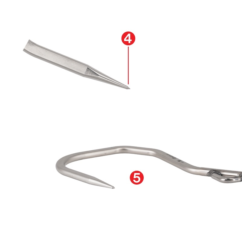 ❹The two-step angle of the tip of the needle prevents the tip from chipping and makes it easy to stick.