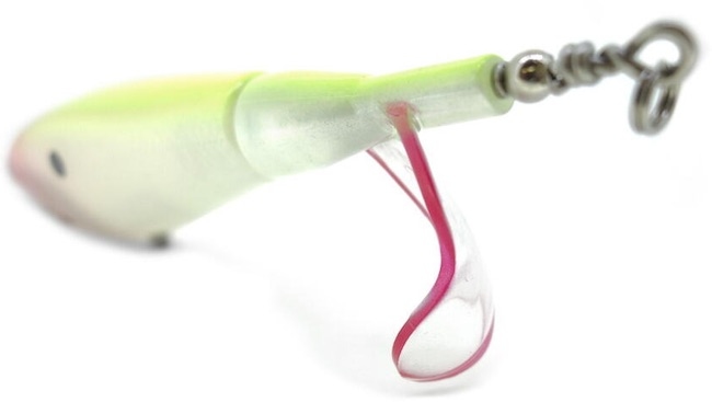 How to use is just rolling! A giant single prop stirs the water, producing a jojobobo and pleasant sound and splash, provoking the monster bass. Other than just winding, it can be used for stop & go and jerk. A lure that anyone can use easily.