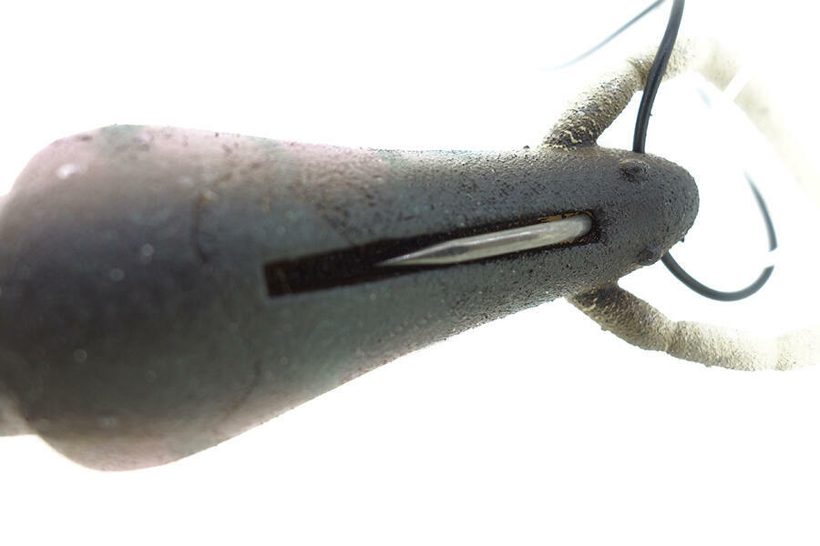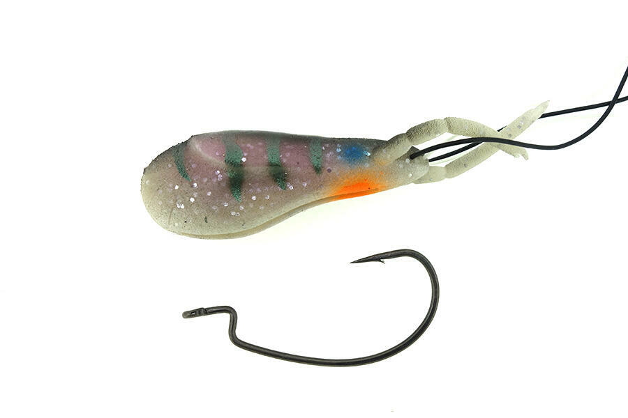 軟餌的腳和觸鬚可營造出有如真蝦和青蛙的生命感,使餌有更高的誘惑力