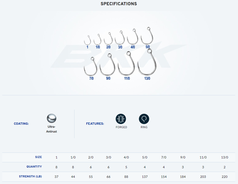 The innovative BKK Hand-Ground hook point provides cutting edge sharpness and penetration performance, while the Ultra-Antirust coating technology minimizes the possibility of rusting and the peculiar hook shape maintains the grip throughout the fight.