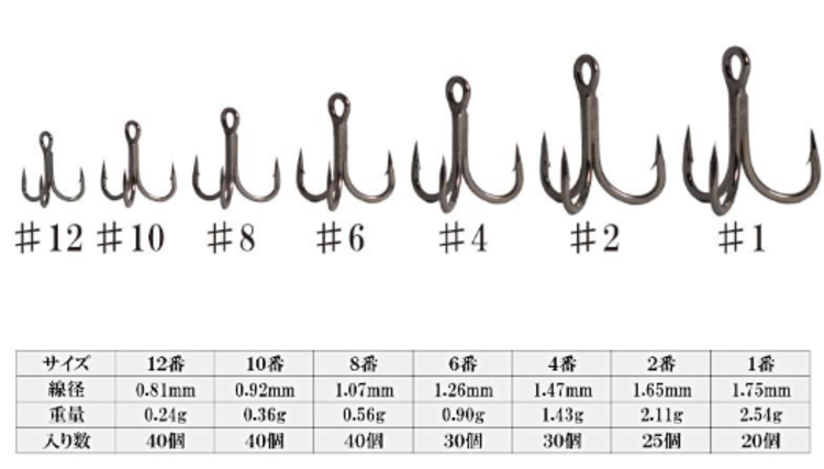 Strong 5X class treble hooks of large and medium size for offshore salt fishing are also available in Japan.