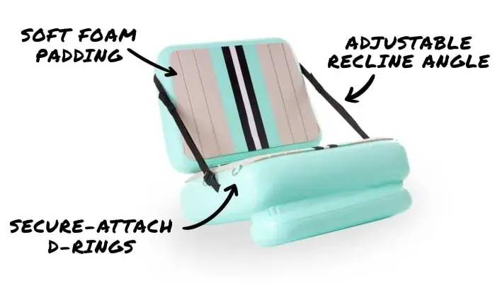 Use the included tie-down straps to secure the seat to the Travelink attachment points or cooler tie-down points on your board, and you’ll be able to use your SUP in a whole new way. For those who love to SUP but have been eyeing a kayak, want to be able to sit for added stability while you’ve got a kid or dog on your board, or those who just want to take a load off, the SUP Aero Paddle Seat is a game-changer.
