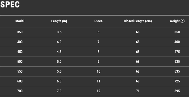 Closed length 68cm (700 / 71cm). The top part is woven and reinforced. Non-slip satin finish on the grip. We pursue designs that are full of originality, from belt hangers to small stoppers that are convenient for small movements. Equipped with a neoprene belt as standard. Squid gaff can be attached. A wide lineup is available, including long models that are useful in high-footed fields such as large embankments and tetra pods.