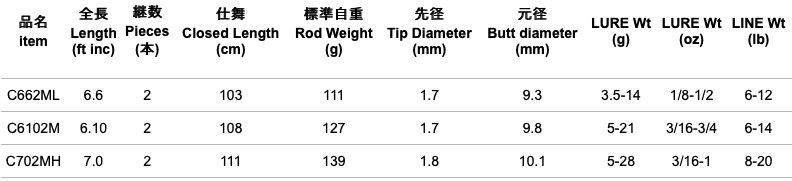 Mounted with reliable Fuji parts such as guides and reel seats, it is compatible with all types of lures.