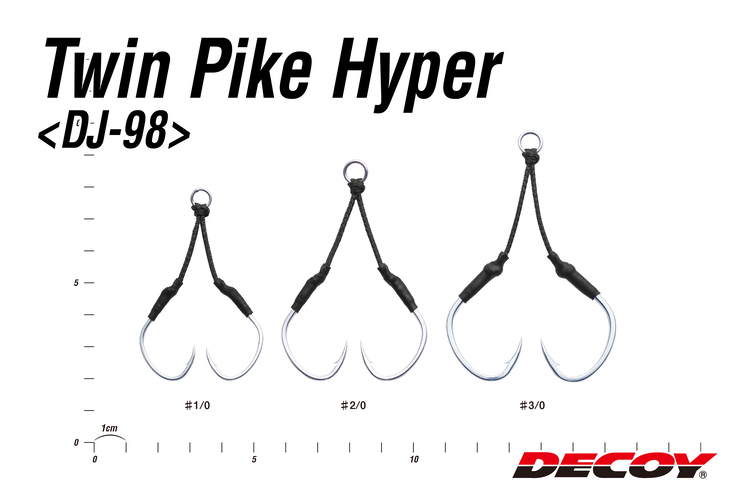 Assist hook "DJ-88 Twin Pike" that can be said to be the absolute standard for light tackle jigging. A reinforced twin pike that can handle heavy tackles and big targets that the versatile model has not been able to cover so far. The hook "Pike Hyper", which is two ranks thicker than usual and about 30% stronger than usual, is adopted, and it is a heavy specification assist that responds to anglers who challenge large blue-runners and large root fish with high drag.