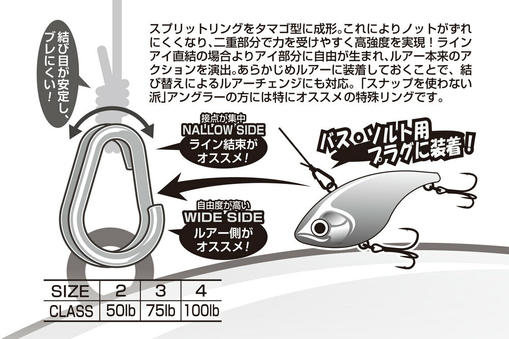 透過將路亞還特別設計成蛋型目的在於使前導線可以更加穩定的固定在路亞環上不會隨便移動