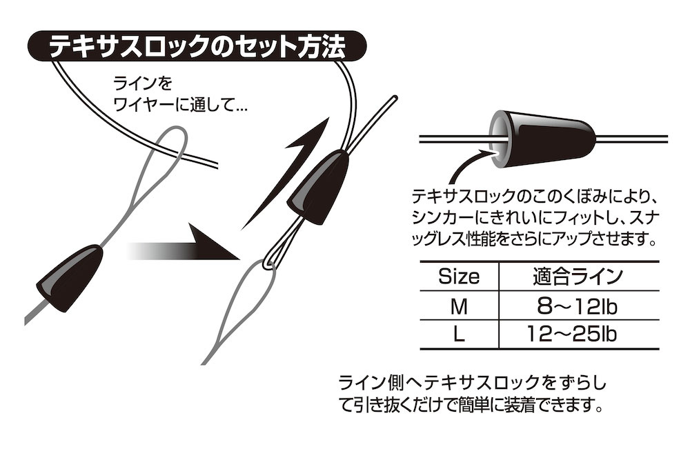 Slightly displaced when hooking, the sinker is less likely to be shaken when swinging the bus, and the exquisite holding power that results in less dispersion is set. If you are worried about the gap, you can add two. Or we recommend "Heavy Lock L-3" which has high holding power.