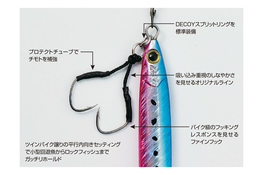 所有小型回游魚都可以使用的鐵板輔助鉤,28g上下的微鐵非常兼容。