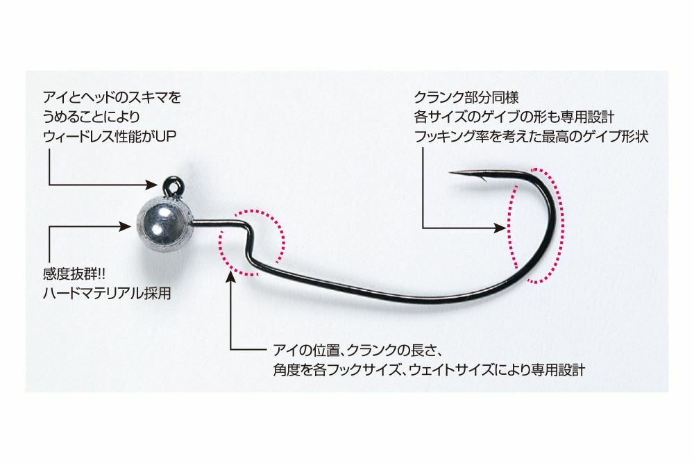 鉤腹部份特別的設計過角度,使得打入魚嘴後能穩固較不易脫落