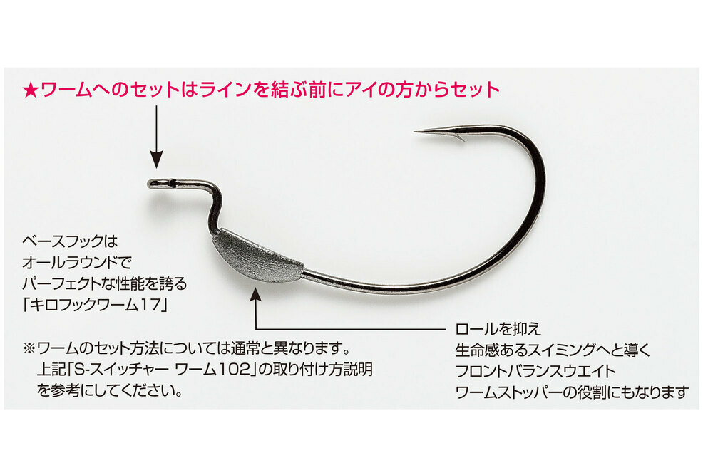這樣的配置可以使套入的軟蟲、軟餌的泳姿稍微的前傾