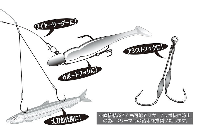 A 3x7 wire with a nylon coat on the surface that is difficult to kink and easy to handle. It can be used for many fish species such as assist hooks, carowire, and leaders, and is ideal for those who want to set rigs and assists with their favorite length! It corresponds to various angler applications.
