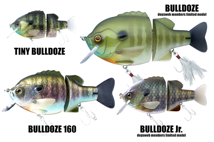 The Tiny has been added to the full size (190mm), 160 (160mm), and Jr. (130mm), allowing for even more pinpoint attack that matches the size of the bluegill that lives in that field.