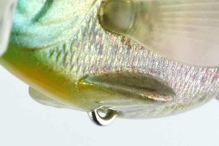 A straight retrieve by cranking can trace from the surface to a range of 1.3m. The powerful vibrations and resounding rattle sound of the wide polycarbonate lip will surely appeal even in muddy water or rough conditions where the lake surface is choppy, and its high obstacle avoidance performance will induce a bite accompanied by intimidation by contacting structures such as weed tops and around standing trees.