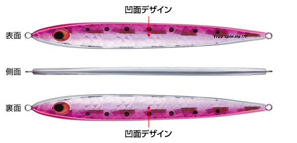 Design by Yoshitaka Tsuruzaki. The "True Spin Jig" combines a powerful rotating feature with a highly effective slim-profile jig for species like yellowtail and amberjack.