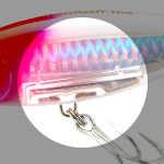 By giving weight to the lens cut part on the back, it assists the lure to fall down when jerk.