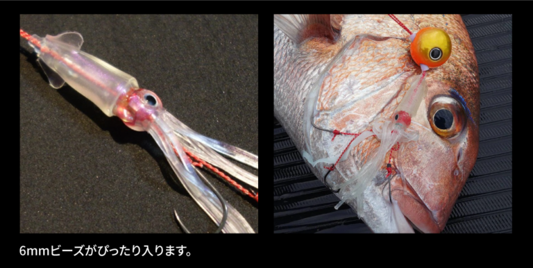 If the Flash J Squid is attached to the hook as it is, it is easy to shift, so it is recommended to use other parts to fix it. We recommend using "Tako Flare L" (Seven Slide) and 6mm beads.