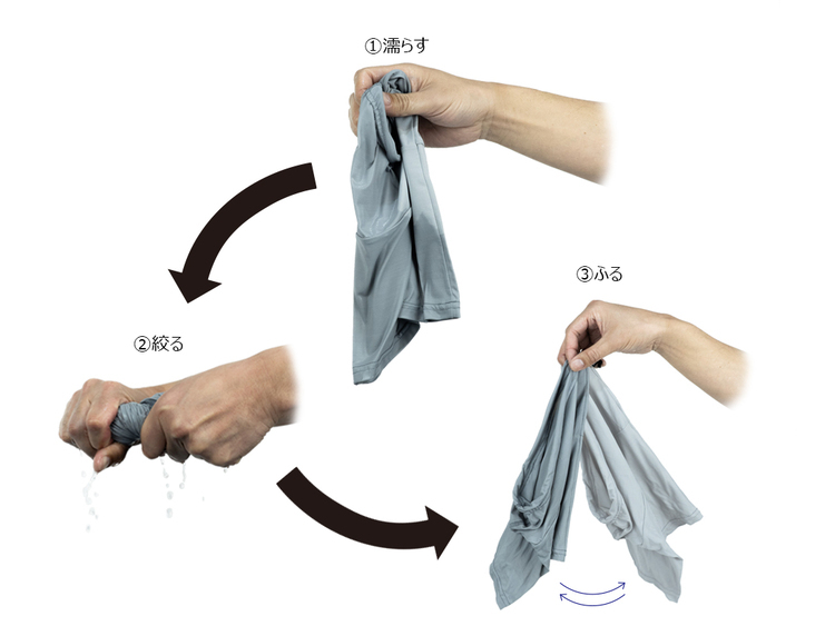 ●Made from a cool-to-the-touch fabric, providing an immediate cooling effect. When soaked in water, wrung out, and shaken, the fabric becomes even cooler — ideal for summer use.