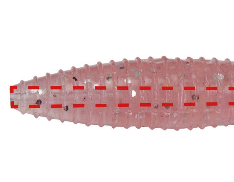 Flicker is a stick-type worm with a distinctive pintail. Like the Horse Mackerel, it has a center guide hole in the head, and is designed so that anyone can easily set the hook. Also, since the worm's form is cylindrical, if the hook is set through the center guide, even if the worm body tears, you can continue using it without losing balance by taking the hook out from another part. . The material of the worm body is set to be a little harder, which reduces the possibility of the worm shifting due to the biting first bite peculiar to horse mackerel. The feature of the horse mackerel