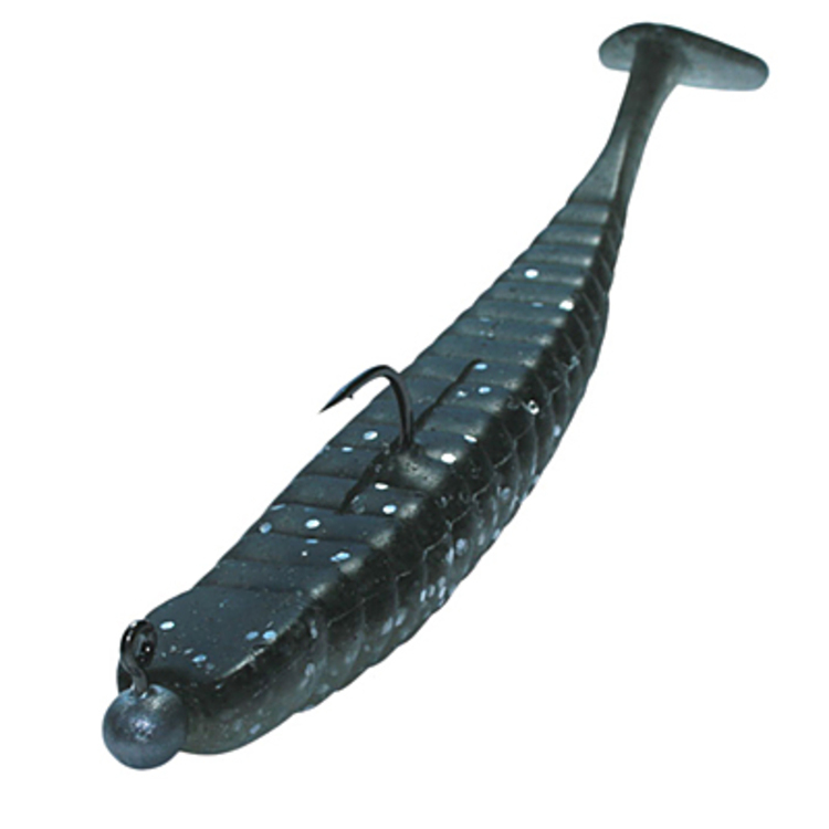 A jig head with a thick hook that can withstand big bass and comes with a wire keeper to keep the worm in place.