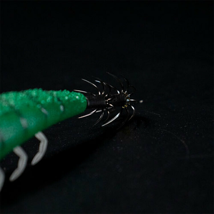It looks just like a shrimp! The shape is designed to look like a shrimp, and lures in squid. After the rod action, the pose position is horizontal, which is said to be easy for squid to hold, and prepares for a bite. The body surface is not wrapped in cloth, but is made of ABS resin, and the surface is uneven and rough so that the squid does not feel uncomfortable when it touches it. The legs extending from the bottom of the body are made of a soft material different from the body. When falling and acting, the legs vibrate finely to appeal to the squid. Depending on the body color, the legs are set to glow, blue glow, or UV. Visually appealing! Uses a carbon canna with excellent penetration properties. Squids that touch the body will not escape!