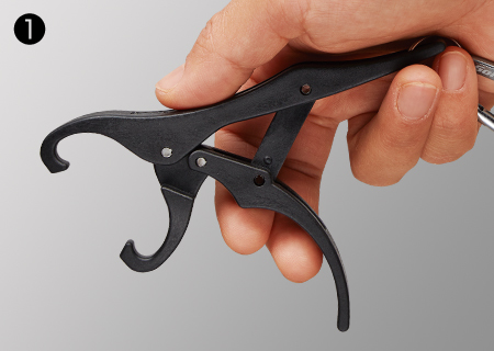 Hold the mouth of the fish firmly with the locking hook opening and closing lever.
