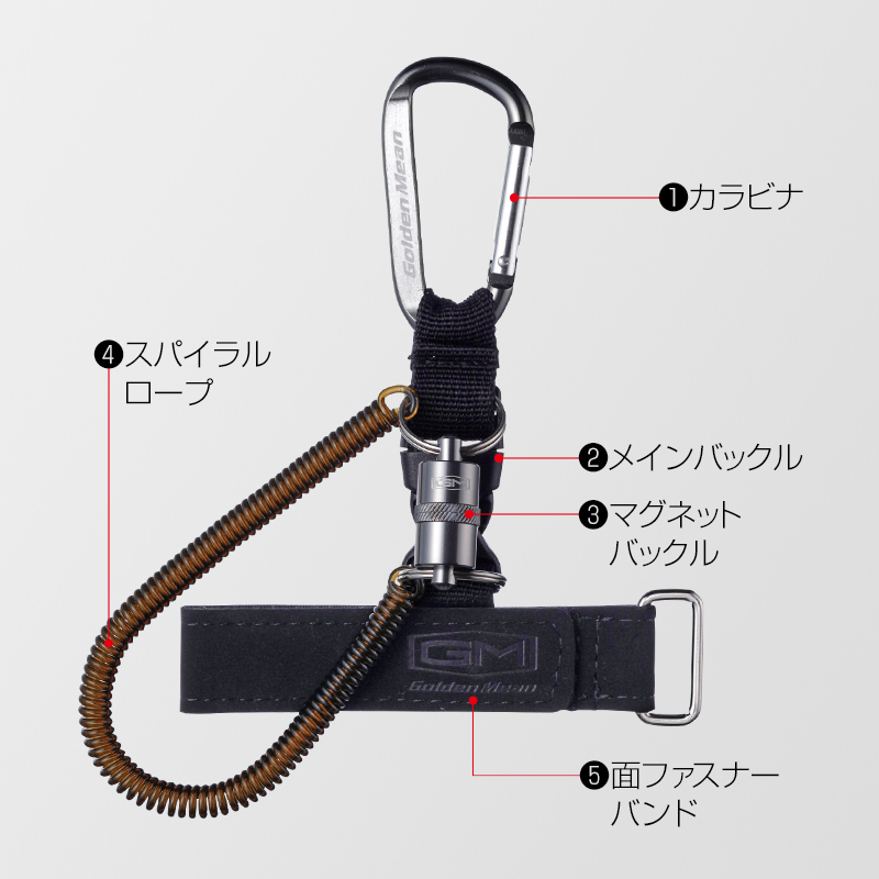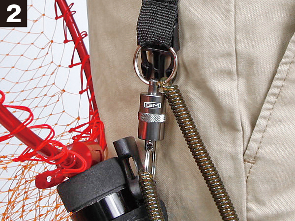 Easy to attach to landing nets (Tamano pattern), etc. The tool is firmly connected with the "main buckle" without removing the carabiner, and it is quickly attached and detached with the "magnet buckle", and the spiral rope prevents it from falling off unexpectedly.