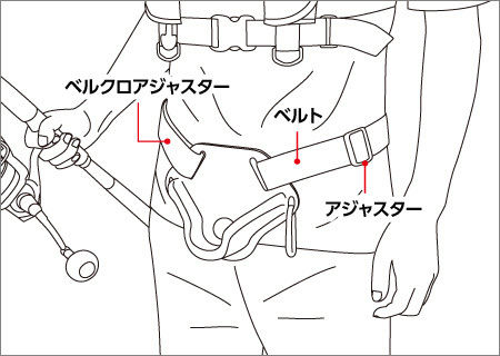 An adjuster that adjusts the size of the belt. A Velcro adjuster is used on one side for easy size adjustment.