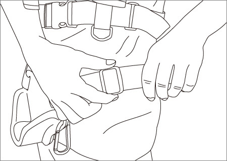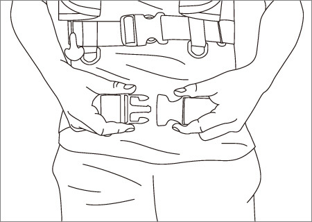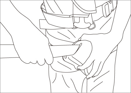 Place the pad on the lower abdomen and adjust the size (length) according to the position of the waist. At that time, adjust the adjuster (A) and velcro adjuster (B) to match the size. Fine adjustment of the size can be easily done with the Velcro adjuster (B). The belt can be quickly attached and detached with the buckle (C).