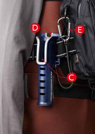 * Please use the attached carabiner spiral rope (E) to prevent the product from falling.
