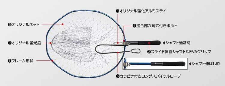 From the newly redesigned frame to upgraded features like a custom EVA grip, telescopic shaft, and carabiner-attached long spiral rope, every part is customized for smoother and more reliable fish landings.