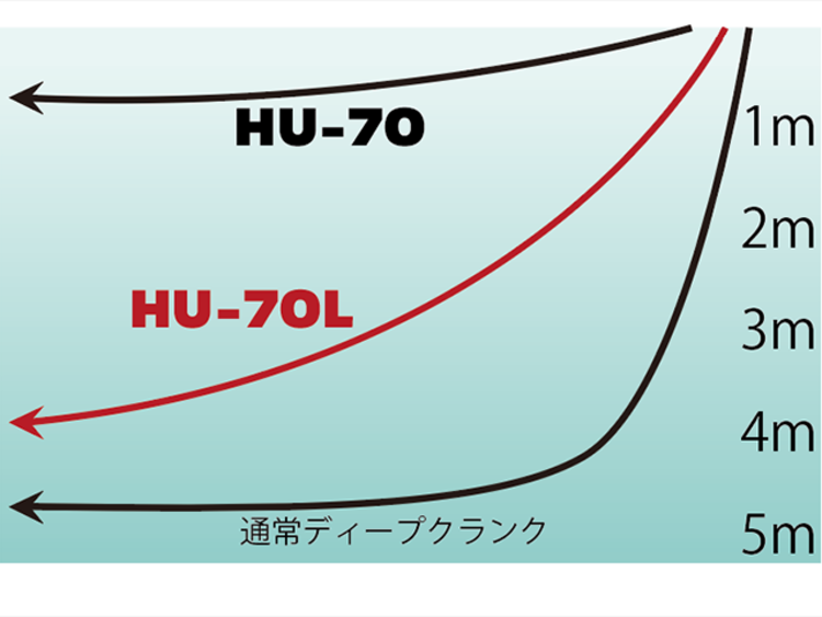 The small HU-70 has excellent casting distance, but the L size has a different dimension of casting distance! The lip, which is a feature of the HU-70, has been transplanted to reduce the heavy pull that was a drawback of big cranks. It can be used normally with MACCA HUMC-71M+, HUMRC-611MG, which are normally used cranking rods. The high-speed retrieval that was a feature of the HU-70 is also possible despite the volume of the body size.