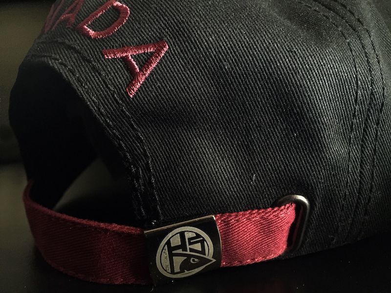Rear part: text “CANADA” realized in flat embroidery, rear in self fabric with metal buckle to adjust the cap circumference.