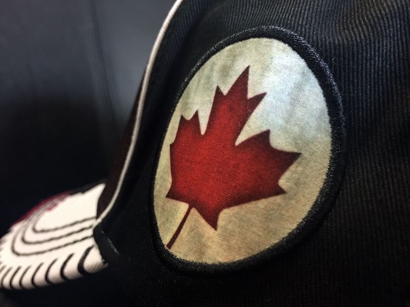 Cap Piker Canada, black cap with white visor,  100% cotton, one size fits all.